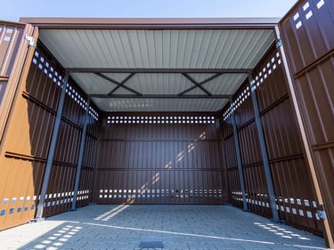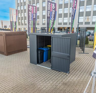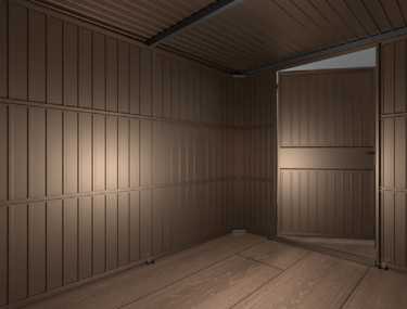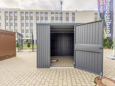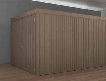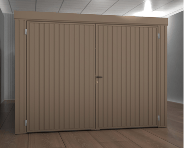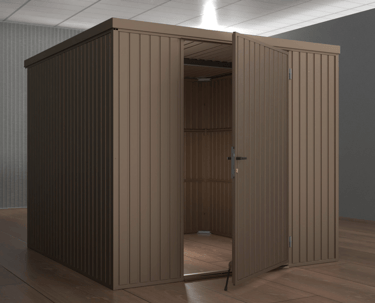 2 durų sandėliukai yra dviejų dydžių 2980 / 2490 / 2180 ir 2980 / 4290 / 2180 (plotis / gylis / aukštis mm).